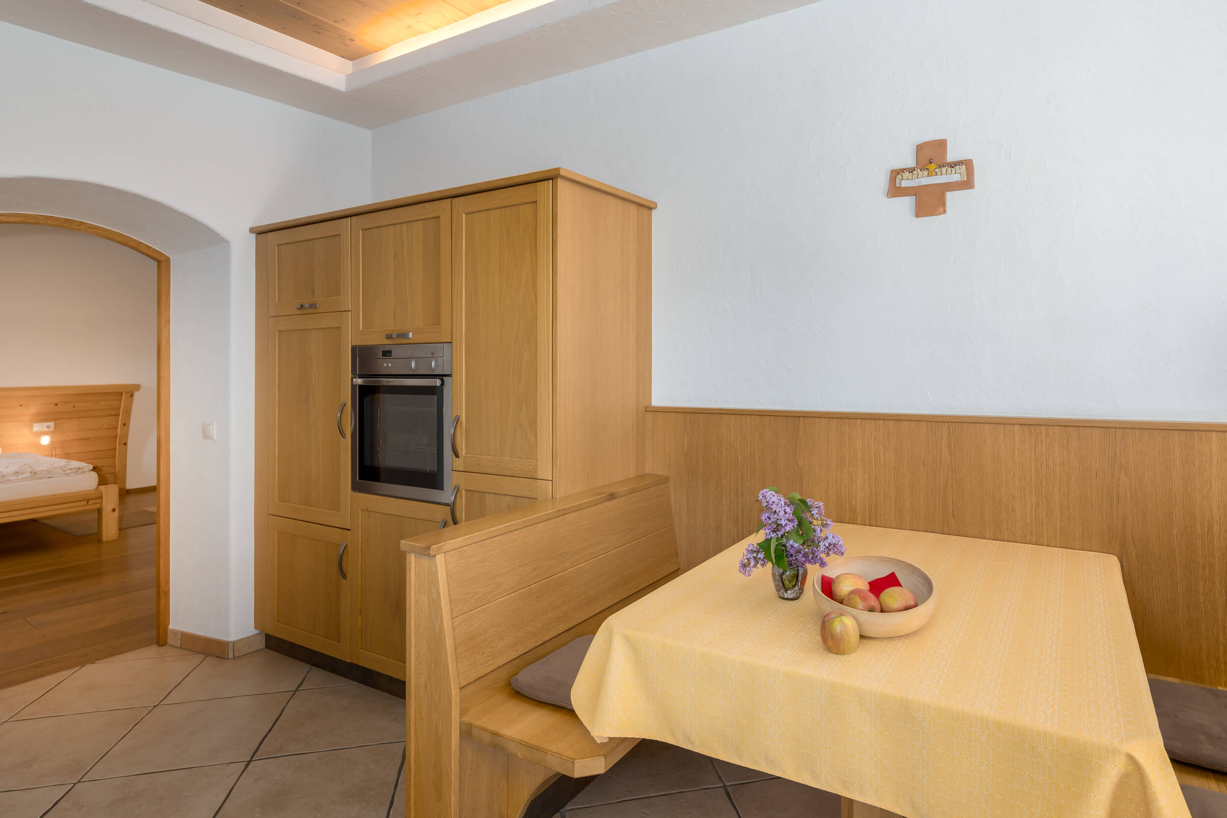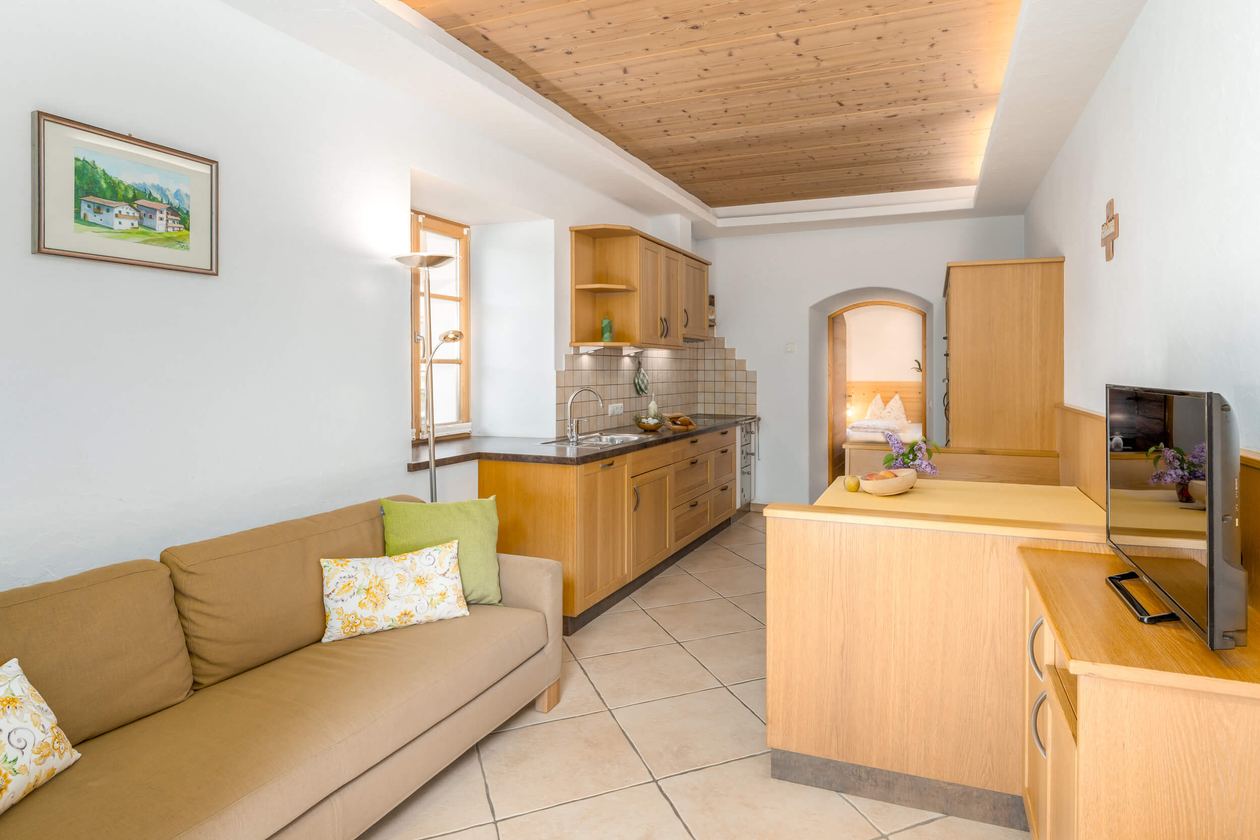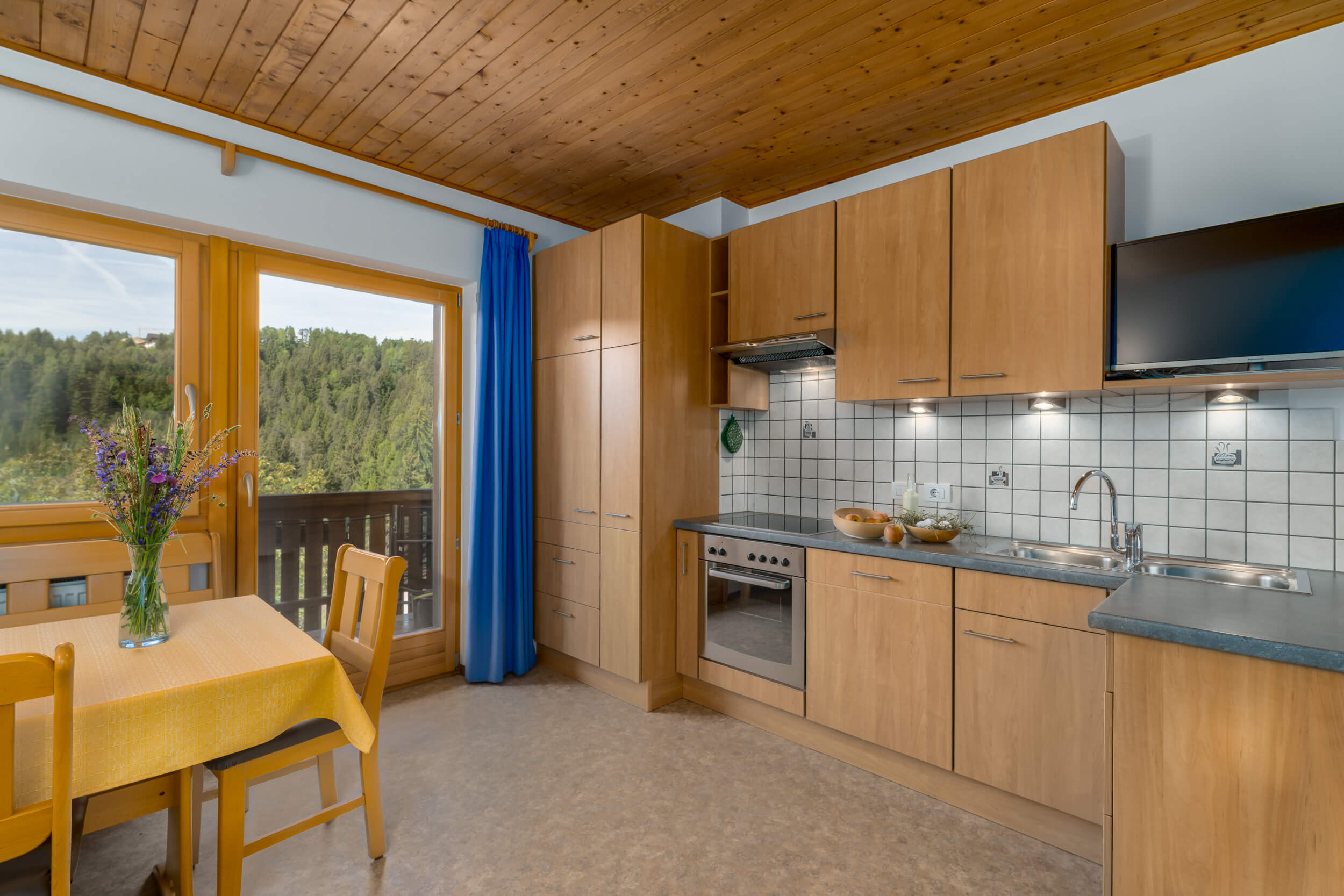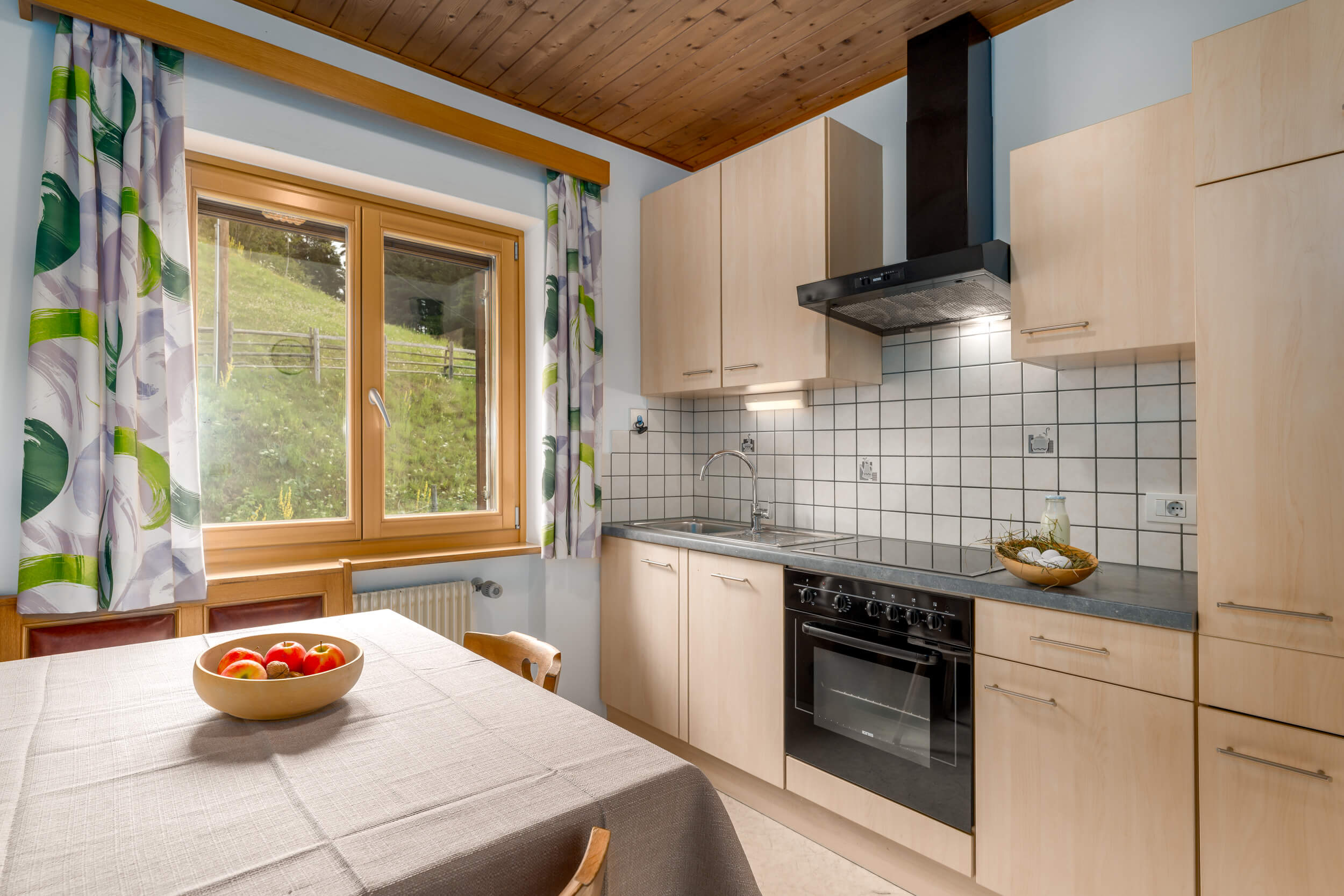 Alle drei Apartments auf dem Unterkoflhof verfügen für Euren rundum bequemen Urlaub im Eggental über eine komplett ausgestattete Küche mit Geschirrspüler, Kaffeemaschine und Backofen. Für besonders erholsame Nächte sorgen ein Holzboden und Naturholzmöbel im Schlafzimmer. Für Familien empfiehlt sich insbesondere die Ferienwohnung Latemar mit zwei getrennten Schlafzimmern. Noch mehr Platz zum Wohlfühlen und Genießen bieten alle Ferienwohnungen mit einem privaten Balkon oder einer möblierten Terrasse.
