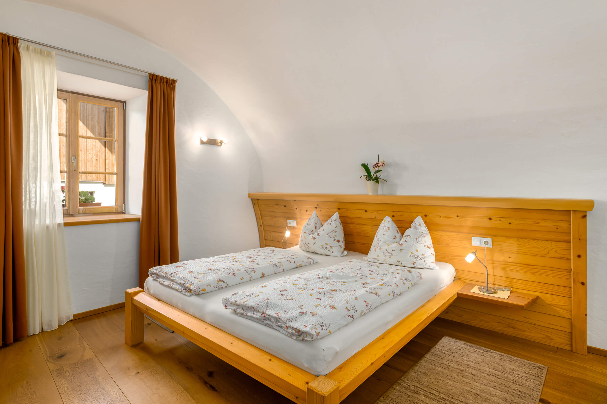 Die 55 m² große Ferienwohnung Rosengarten steht unter Denkmalschutz: Schließlich befindet sich das komplett restaurierte Appartement in einem historischen Gebäude aus dem 16. Jahrhundert. Diese Wohnung besitzt für gemütliche Wintertage eine Fußbodenheizung und spendet an heißen Sommertagen angenehme Kühle.